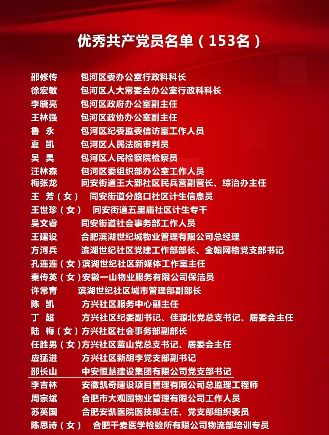 新闻快讯媒体聚焦 合肥市包河区:包河经开区庆祝建党99周年及优秀党员表彰大会 媒体聚焦 / 发布日期:2020/07/02 集团蔡总参加包河经开区庆祝建党99周年系列活动 集团党支部书记邵长山入选优秀共产党员,被包河区通报表扬 集团员工方杨上榜乘风破浪的包河经开区一线党员们